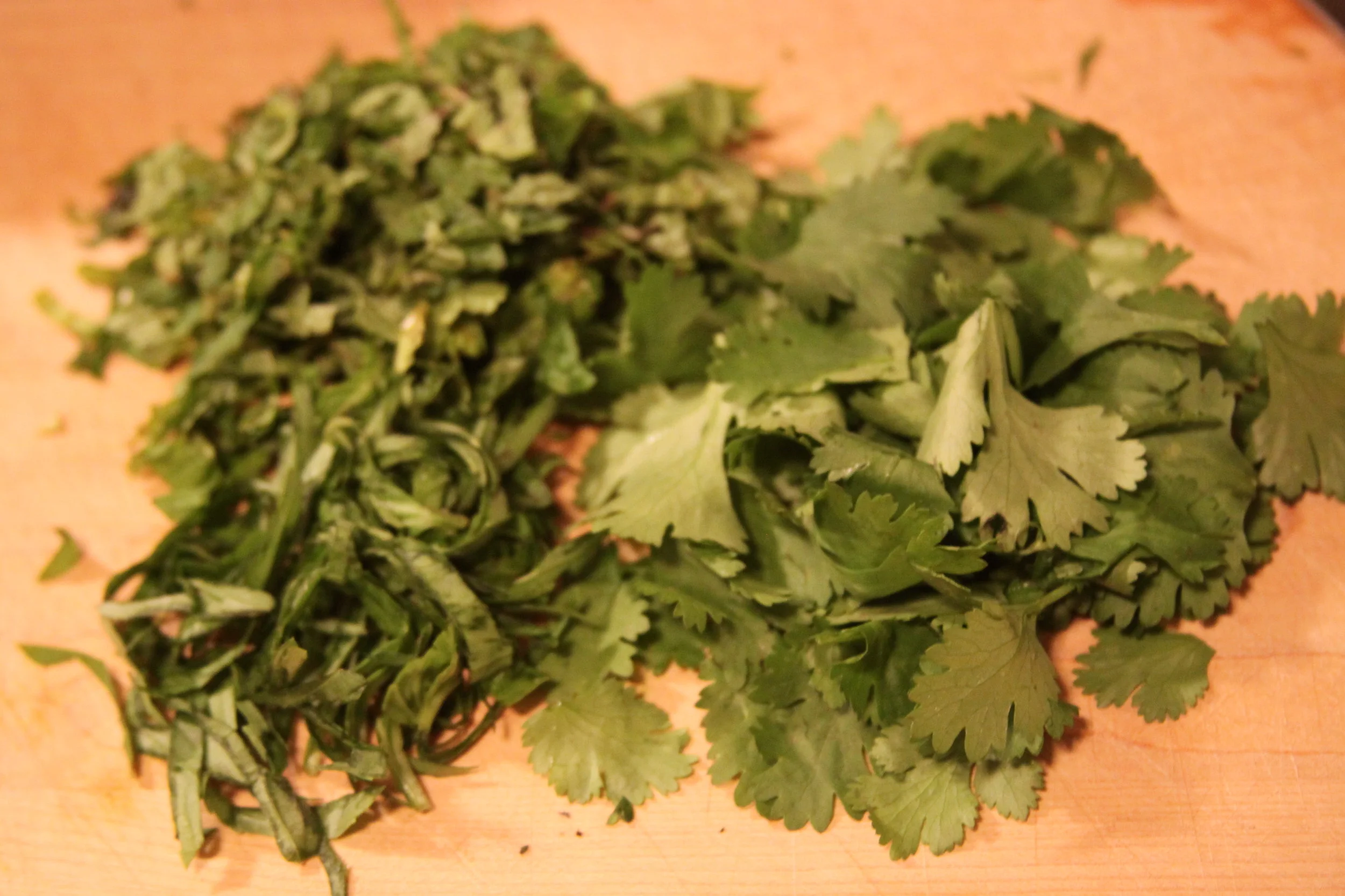 Mound the salad atop the greens on a plate. Serve with a platter of accompaniments and rice.