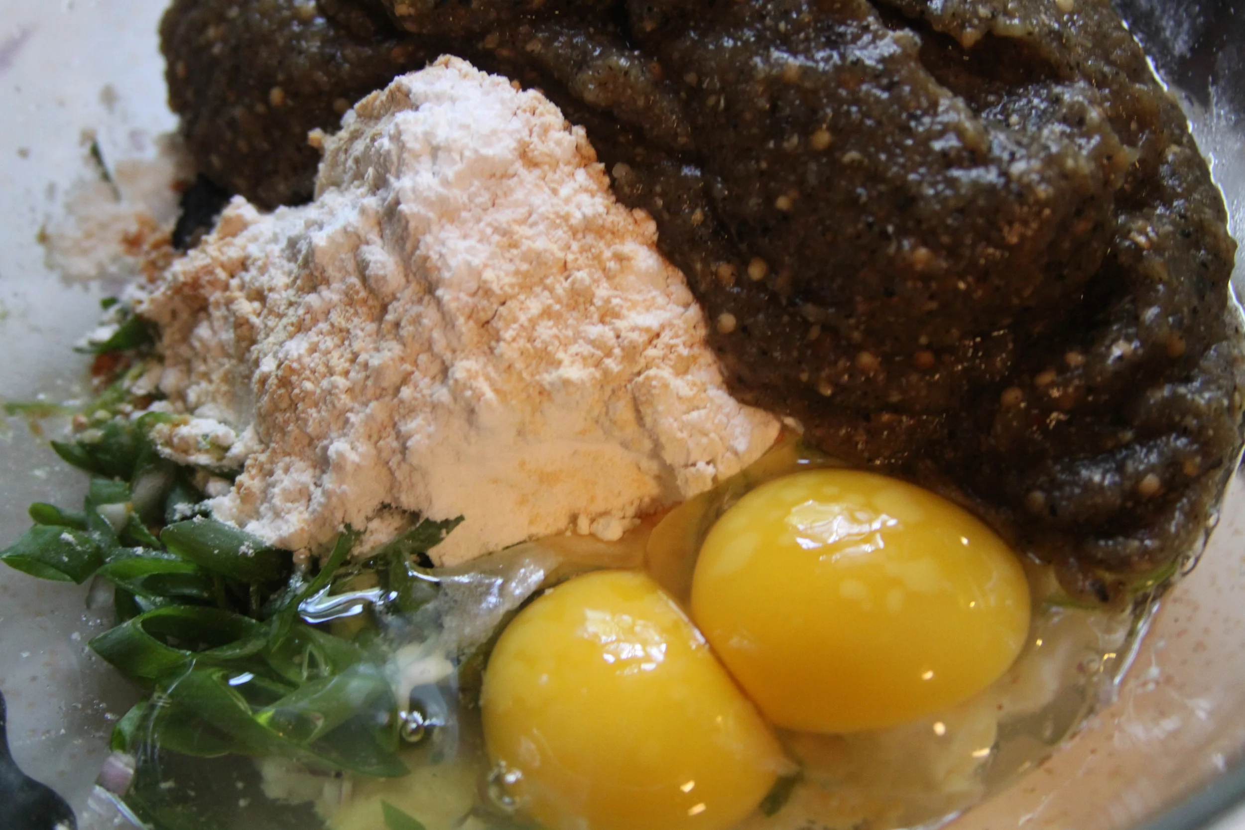 Mix the eggplant with the remaining batter ingredients in a bowl and stir until well combined.