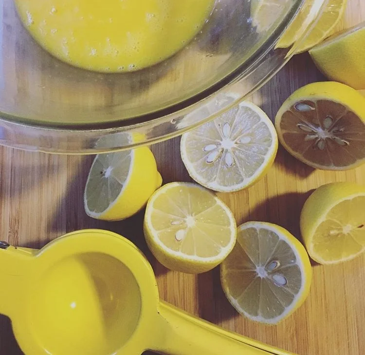 In a large bowl, combine the lemon juice and egg yolks and whisk vigorously until smooth.