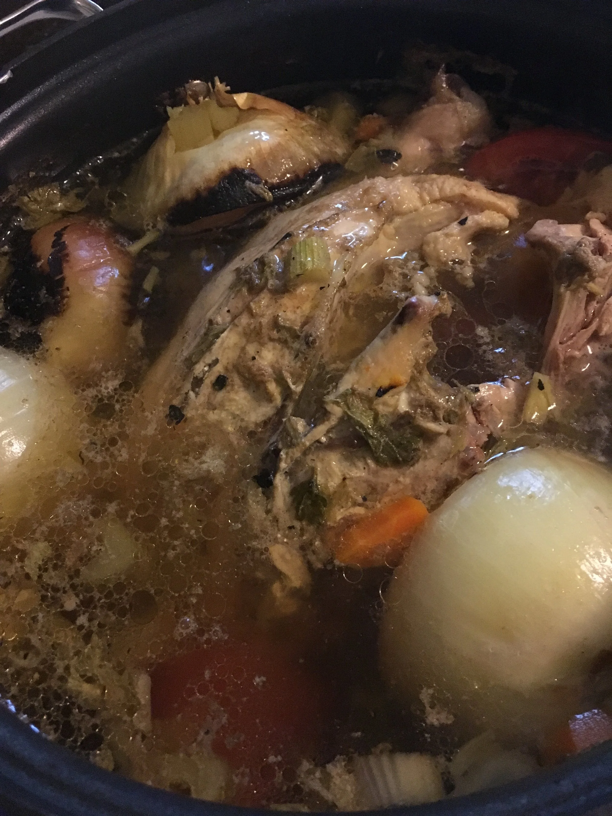 When making soups, it's important to start with your own stock. I always make my own stock for this soup and freeze extra for later use. I cannot stress enough what a difference it makes in the final product! You can even freeze extra stock in ice cube trays with a chopped herbs to throw into sauces to make them richer. I also almost always char the onions that go into my stocks. This adds a richness and smokiness to them that goes well with most soups.