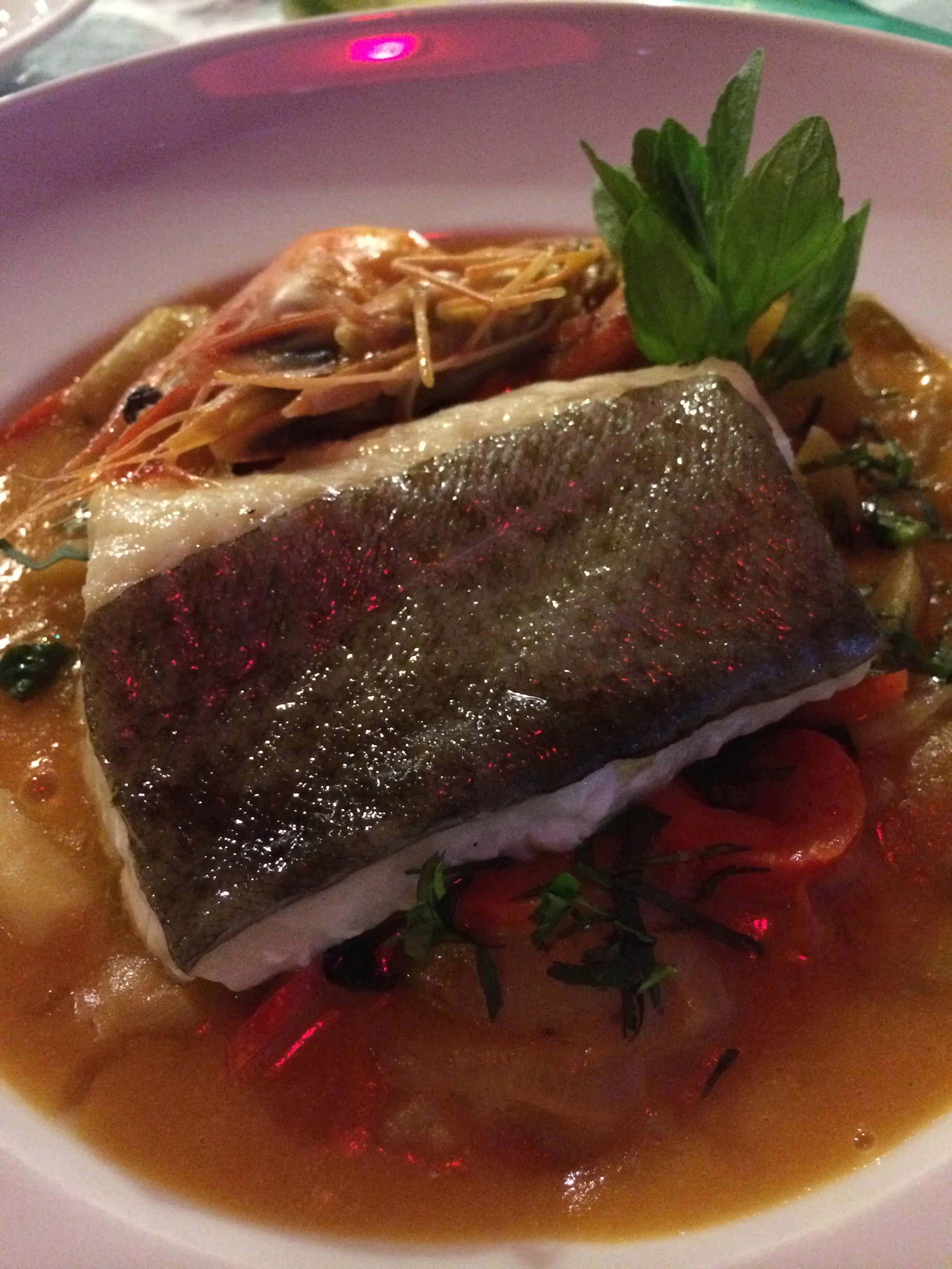 This unassuming little restaurant is perfect for budget travelers with house wines that cost €3 a glass and mains about €10. The space itself is cute but simple. It's the location that can't be beat! We sat at a table next to the huge window looking out directly onto the river - so close that the waves sometimes splashed onto the glass. The menu varies according to seasonal availability. The plates are generous, beautifully presented, and full of the freshest seafood!
