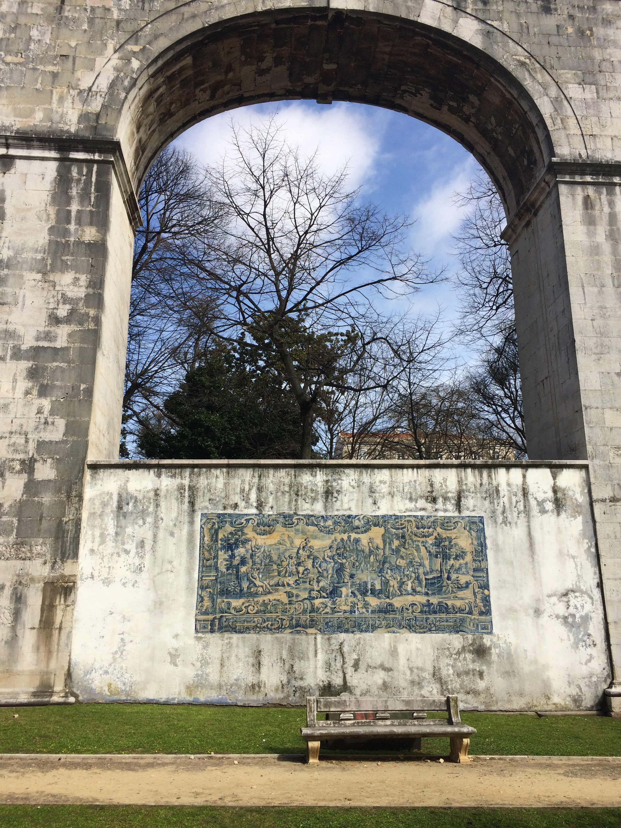 The next day, my husband and I ventured out on our own. From the hotel we walked downhill along Rua das Amoreiras where we passed Jardim das Amoreiras or Jardim Marcelino Mesquita, a beautiful park along the famous Águas Livres Aqueduct.