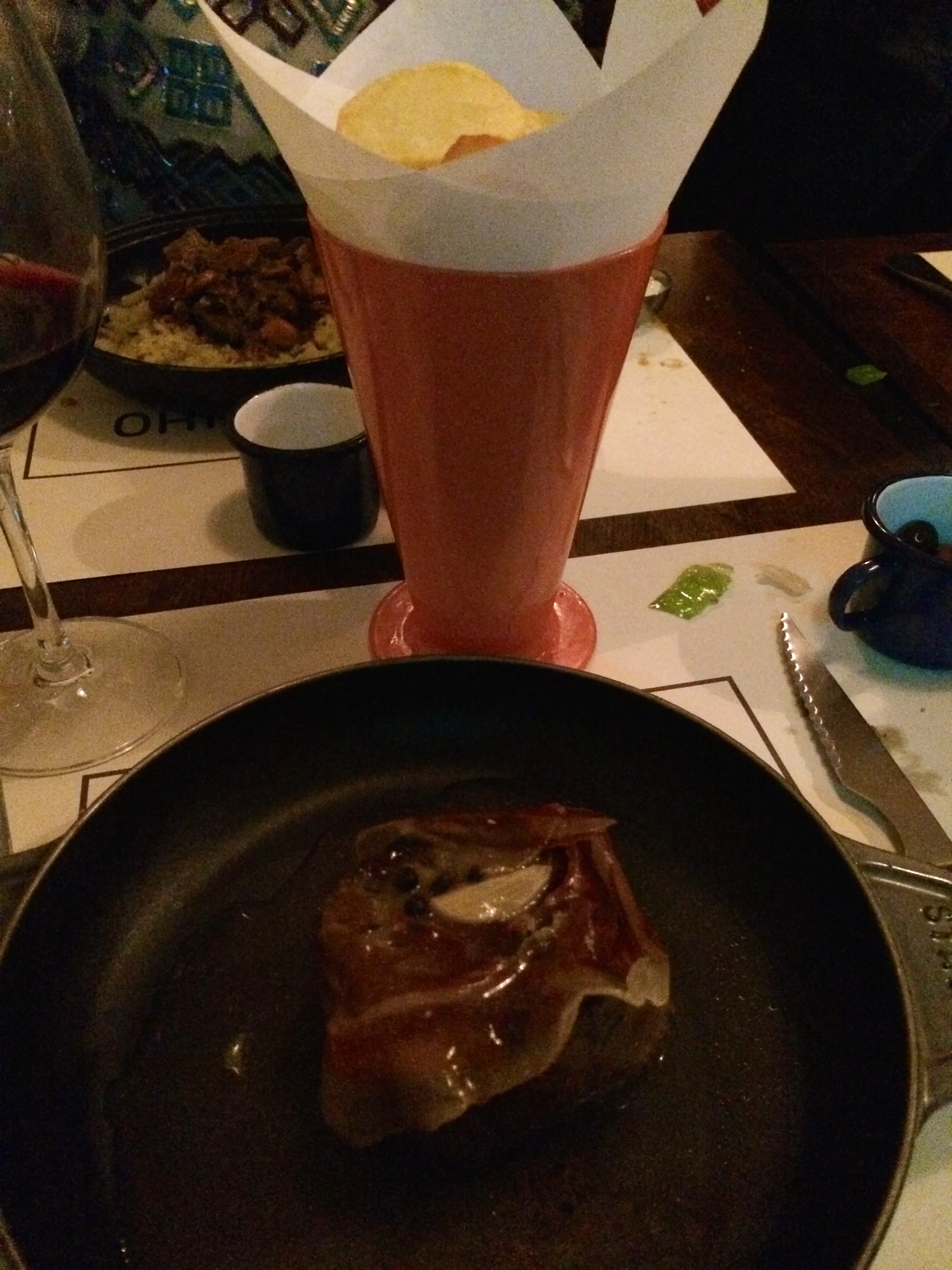 For my main, I ordered the Alentejo black pork, with french-fries, “farofa” and black beans. I cannot tell you how happy I was to get a pink pork steak. It was succulent and delicious and served in a cast iron pan. The fries were more like thick cut chips, also delicious.