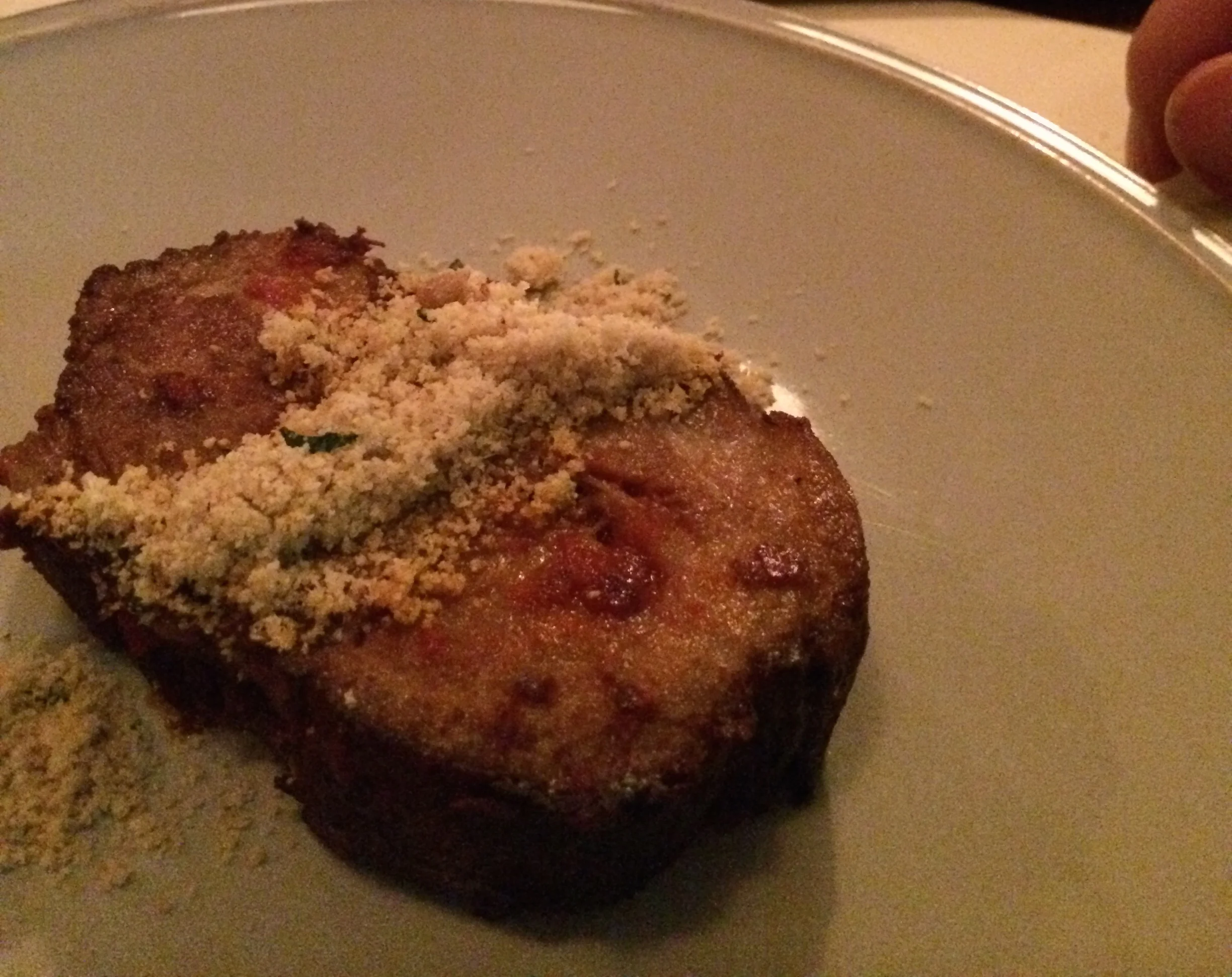 My husband had the steak (quelle surprise) which was so moist and tender you barely needed a knife to cut it. Our friends had the lamb tagine with couscous and the flaked cod with bread crumbs, LT egg and “exploding” olives. The cod dish was like a casserole and the exploding olives were molecular gastronomy creations of olive juice spheres that literally exploded in your mouth. We all enjoyed the meal very much.