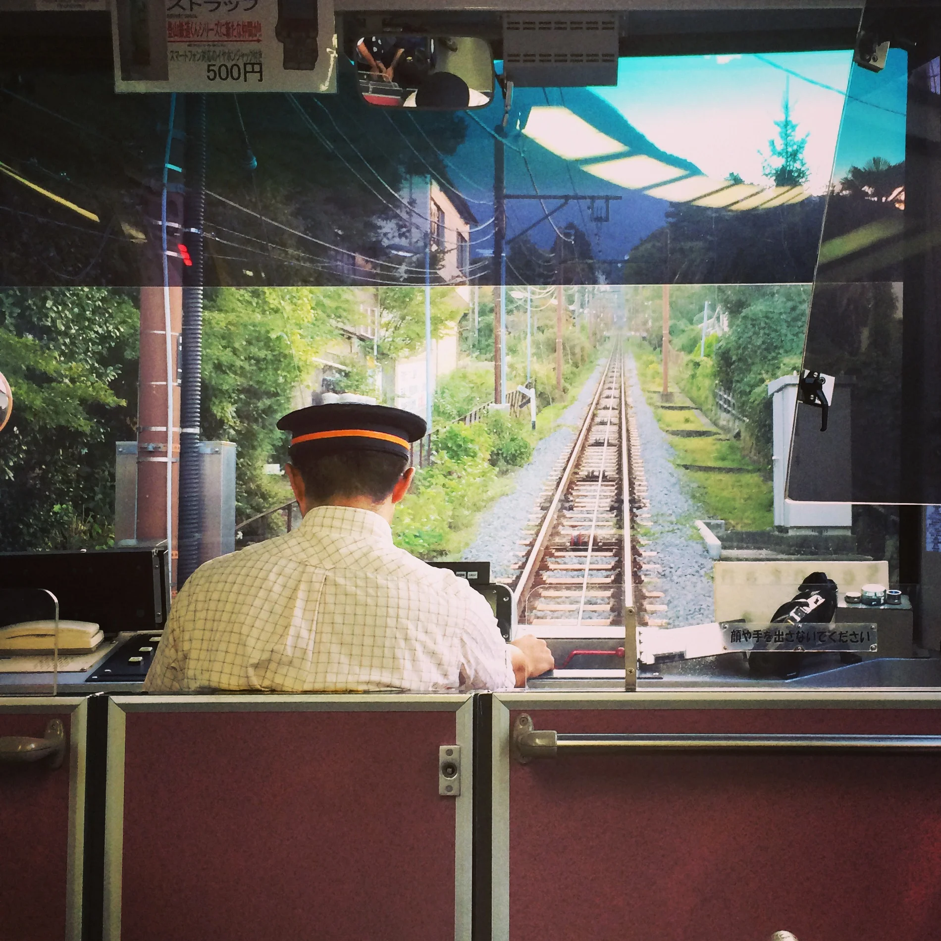 In Gora, you change to a charming wooden train car designed to go up the mountain along switchbacks. We were among the only tourists coming up this way but I don't understand why. While probably not the easiest or even the fastest route, it is definitely the most interesting and the most scenic. A class of little schoolgirls dressed in uniform slowly dwindled down to none as they each got off at their local villages along the way. The vegetation was lush and dark. The village stops that almost looked like little shrines themselves with waving paper banners and sake barrels above gates were the only indication of life on the mountain along the track.