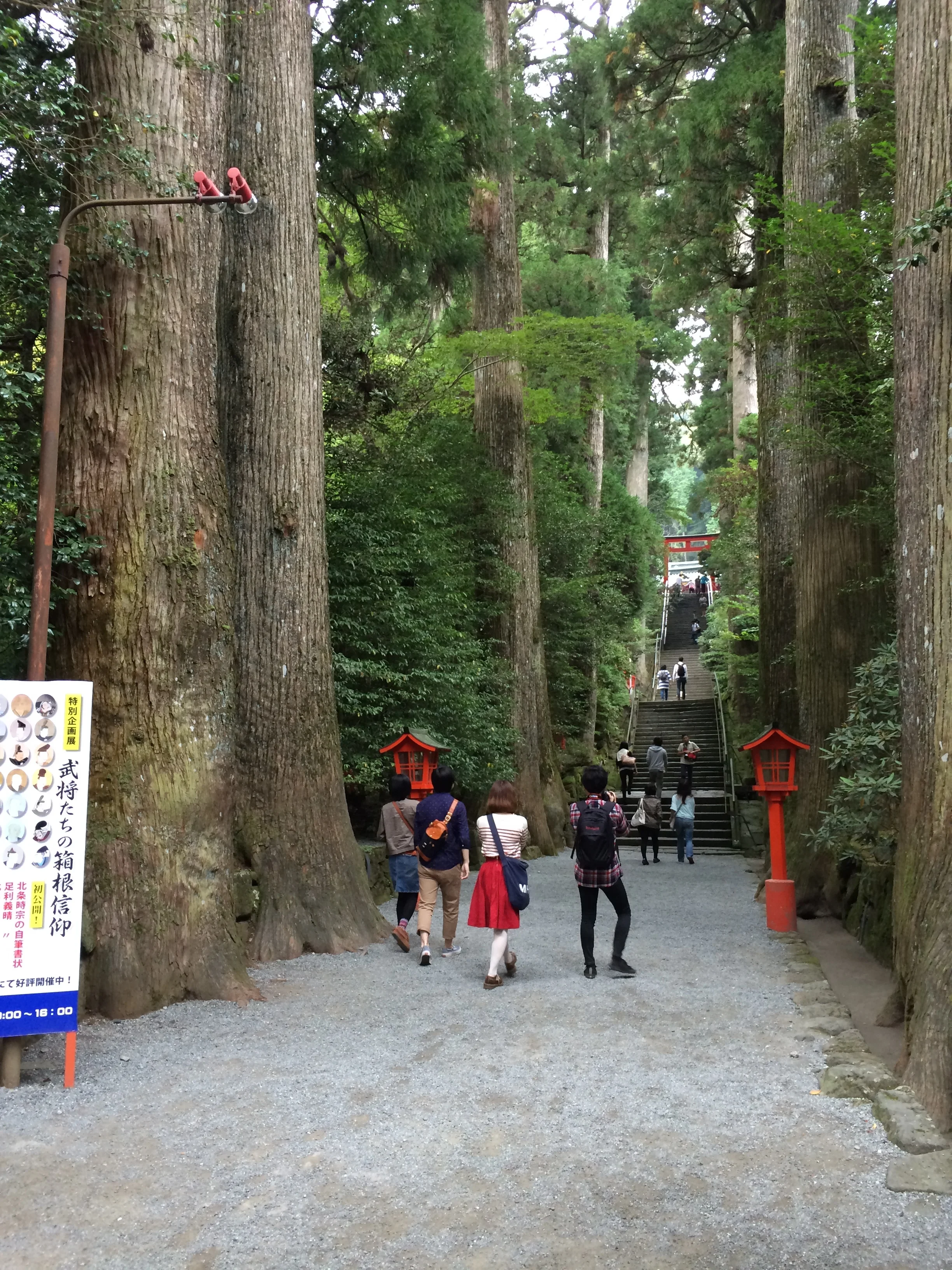 Between Moto-Hakone and Hakone-machi you can walk along the ancient Tokaido road (one of the country's five oldest). The lovely Cedar Avenue is just beyond the checkpoint where you enter. It's a leisurely hike that can take up to 2 hours. I read that there is a tea house and onsen along the route but our friends were on a tight schedule so we didn't end up going to either but I would definitely take a look if you find yourself along this road. The tea house has been in service for over 350 years.