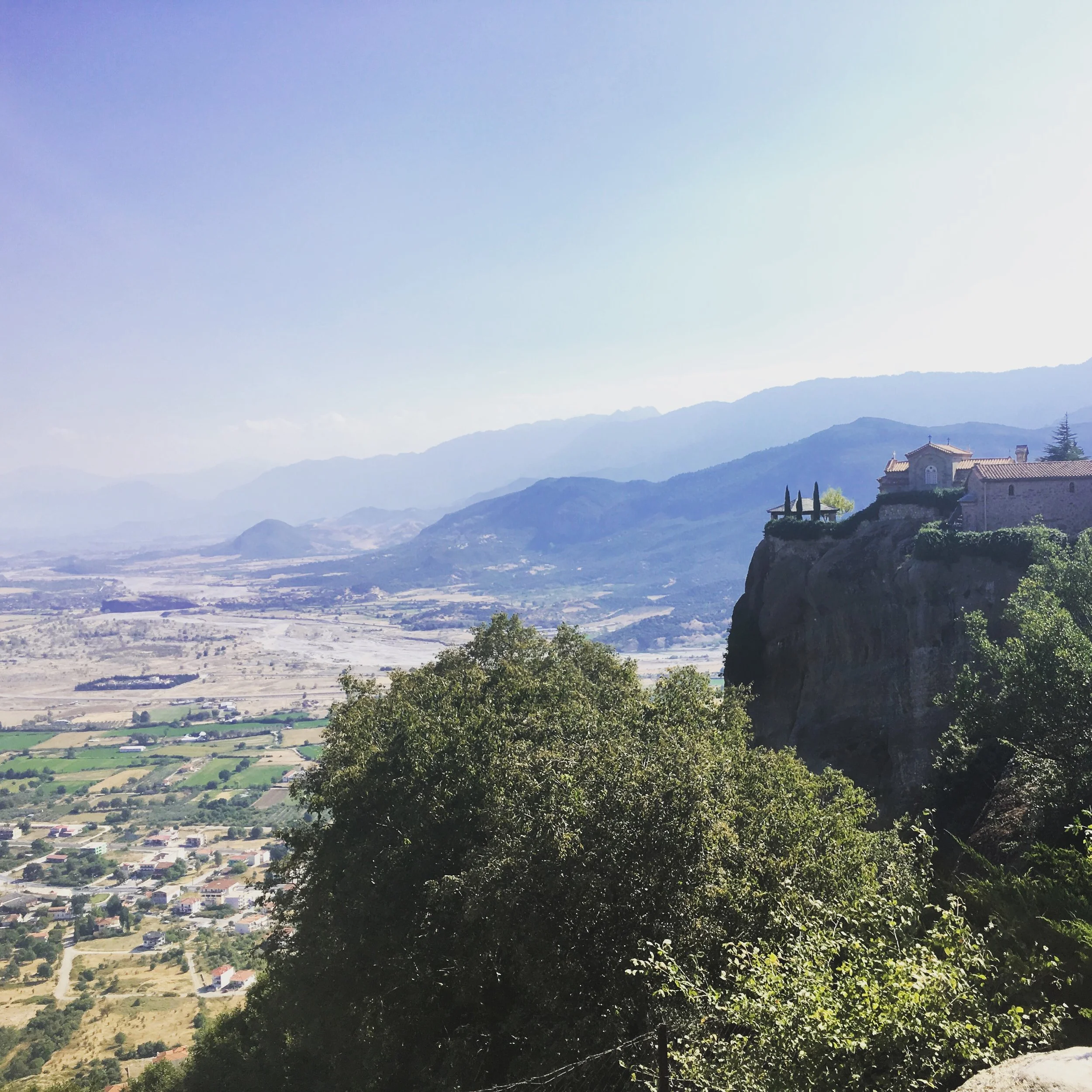 We climbed past the two churches and up into the large crevasse between the Agiaapostoli and Alissos. I had two conflicting maps - one had a trail, the other did not. Passed the base of the smallest, standalone pillar, Adrachti, we decided to push on but what I thought were trails, I now think might have just been naturally formed waterways. I’m still glad we went this way. Through the rocks, you can see Kalambaka below and above, the swooping swallows calls bounce off the rocks. You feel as though back in another time entirely. We hiked up a steep incline that led us back past Adrachti. It was a hell of a climb but really fun and great exercise!