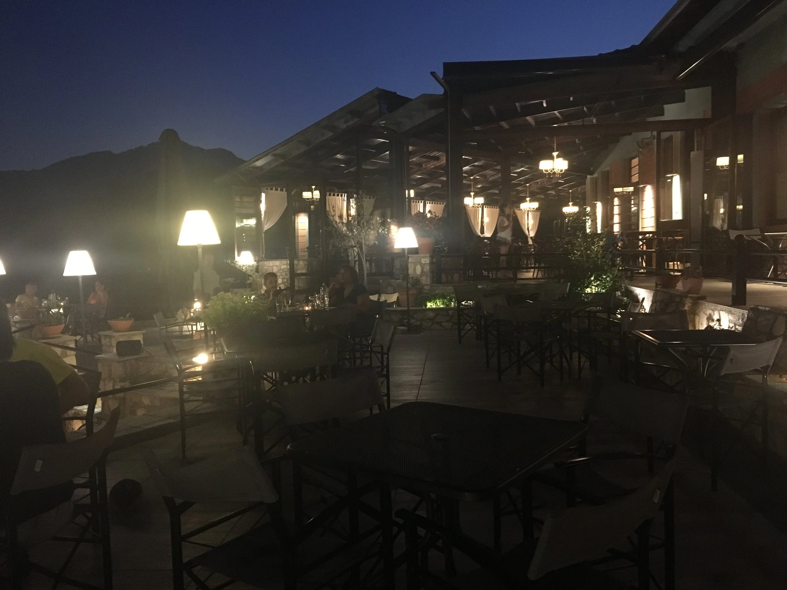 That night we returned to the hotel to freshen up and then made our way to Meteoron Panorama restaurant (meteoronpanorama.gr) for a drink. Once there, we were totally charmed by the beauty of the place and decided to stay for dinner. Situated between Kastraki and Kalambaka, the sprawling terraces of the restaurant sit directly underneath the cluster of pillars from our first hike that morning. And, unlike the other rocks, they benefit from some up-lighting so you can see them from the restaurant in the evening and at night. We ordered mushrooms stuffed with anthotiro cheese and herbs, roasted lamb and lamb chops paired with Hatzimichalis Cabernet Sauvignon that ended up being my favorite wine from the trip and only €12.50 a bottle in duty-free! The food was excellent and the view spectacular. I definitely recommend this place for anyone visiting the area!